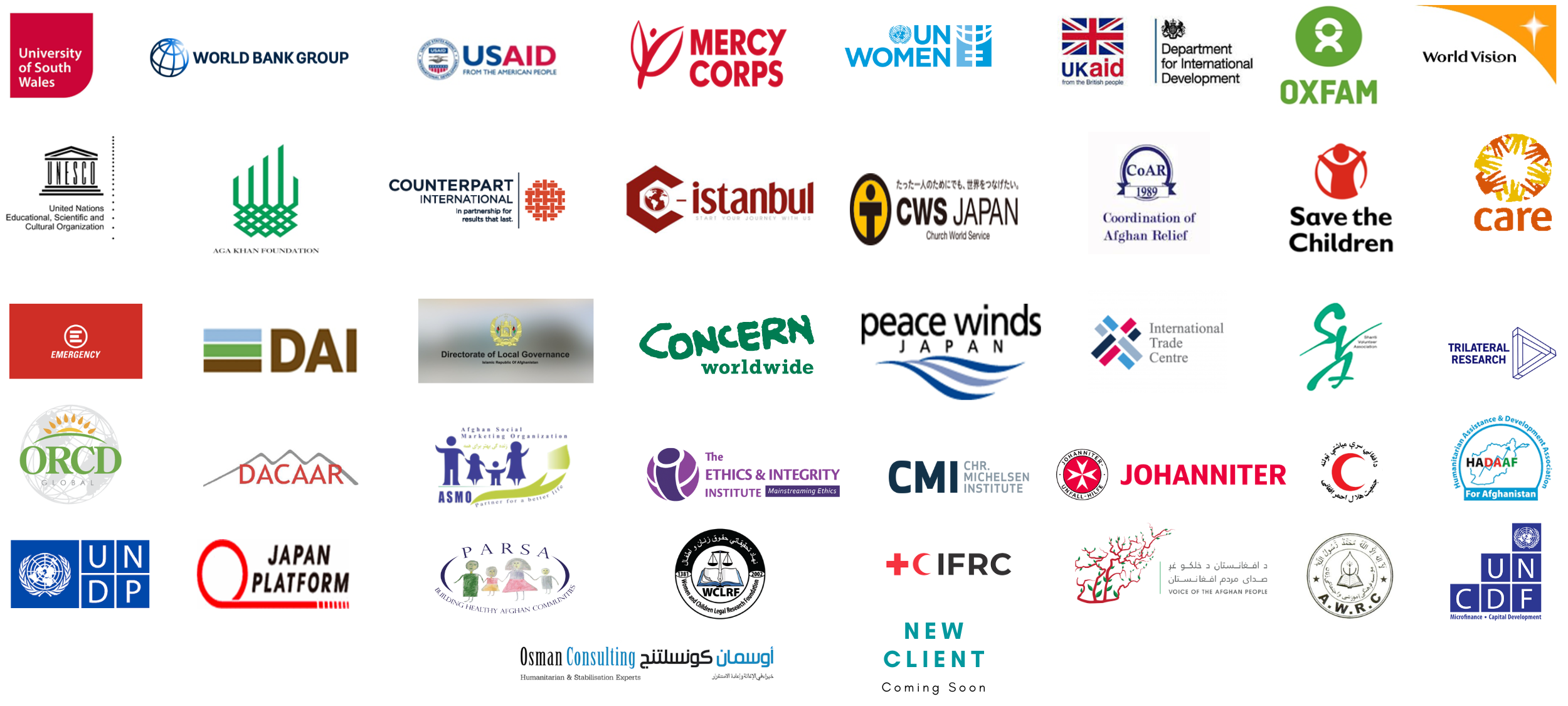 TAGHEER has served Government, Embassies, United Nations, International NGOs, Private sector, Corporate clients, and Individual customers in multiple countries for the services portfolio we offer . At the core of our business, we have ensured client satisfaction, while our work has been recognized by the below clients.